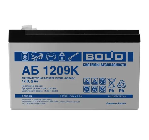 АБ 1209К Аккумуляторная батарея 12 В, 9 Ач. Болид