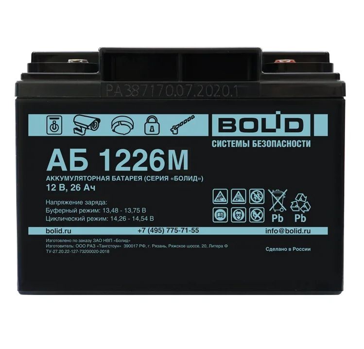 АБ 1226М Аккумуляторная батарея 12 В, 26 Ач. Болид