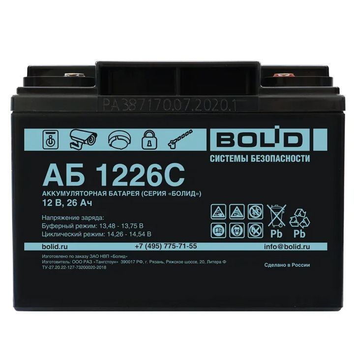АБ 1226С Аккумуляторная батарея 12 В, 26 Ач. Болид