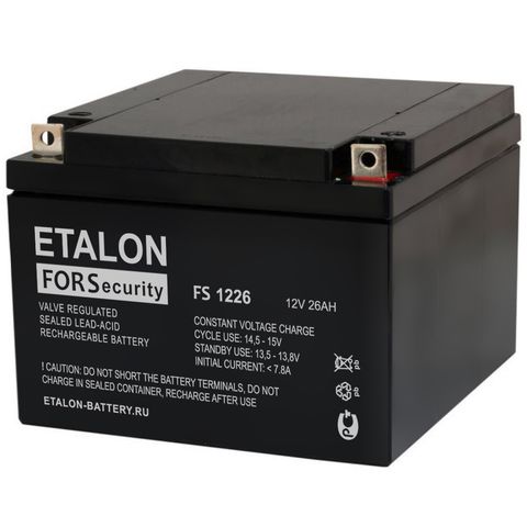 Аккумулятор ETALON FS 1226 является стационарным свинцово-кислотным необслуживаемым и изготовлен по технологии AGM. Бюджетная серия FS спроектирована под применение в охранных и пожарных системах, системах освещения, контроля и доступа персонала.