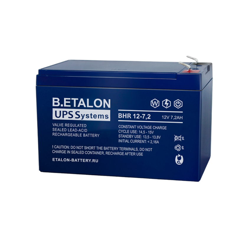 Аккумулятор ETALON BHR 12-7,2 является стационарным свинцово-кислотным необслуживаемым и изготовлен по технологии AGM. Серия B.ETALON спроектирована под применение в системах бесперебойного питания. Отличительная особенность – высокая энергоотдача благодаря специальной технологии изготовления свинцовых пластин.