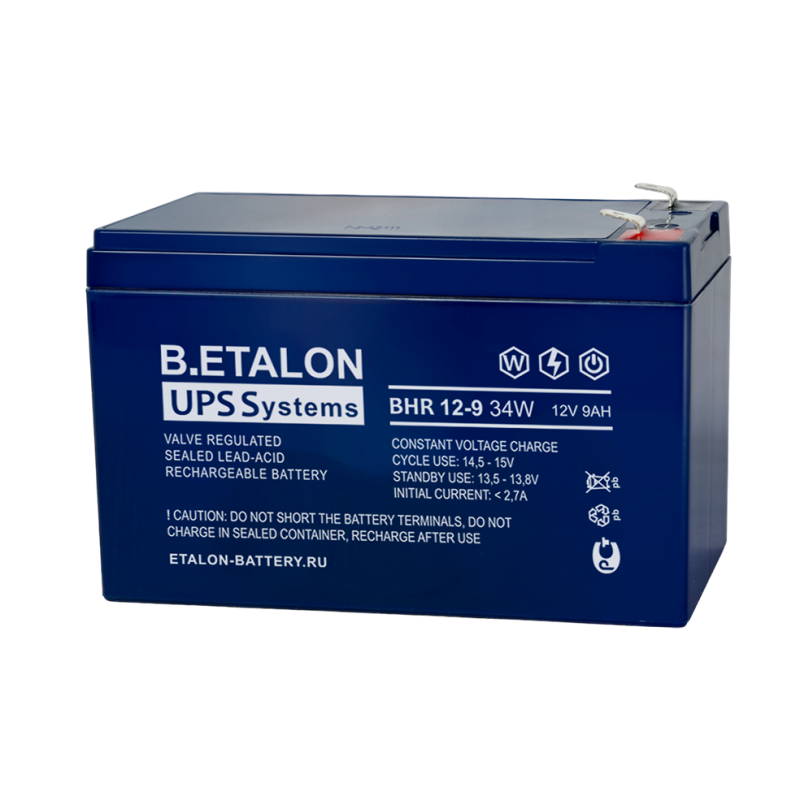 Аккумулятор ETALON BHR 12-9 34W является стационарным свинцово-кислотным необслуживаемым и изготовлен по технологии AGM. Серия B.ETALON спроектирована под применение в системах бесперебойного питания. Отличительная особенность – высокая энергоотдача благодаря специальной технологии изготовления свинцовых пластин.