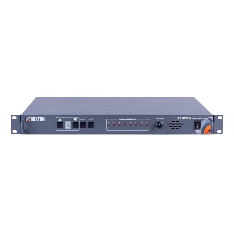 Аудио-процессор ROXTON AP-8264 - блок речевого оповещения с возможностью ручного и автоматического управления, предназначен для воспроизведения звуковых сигналов, речевых сообщений заранее записанных на цифровой носитель. Блок может работать как самостоятельно, так и в составе системы оповещения и управления эвакуацией СОУЭ ROXTON 8000. На базе данного блока при его совместном использовании с программируемой пожарной станцией можно реализовать сложный алгоритм оповещения, используемый при построении СОУЭ 4, 5 типов.