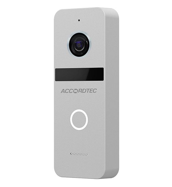 IP вызывная видеопанель, камера 1080P, угол обзора 120 град., ИК подсветка, 2 выходных реле, цвет корпуса-серебро. Поддержка POE или питание 15 В, IP, металлический корпус, угловой кронштейн в комплекте