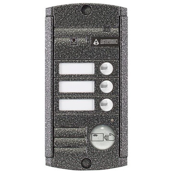 Вызывная видеопанель, накладная, 4-х проводная на 3 абонента, с ИК подветкой до 0,6м, матрица 1/3", 1000 ТВл, 12В, угол обзора 75 (гор.) 55 (верт.). Рабочий диапазон t -50…+50. Габариты 140х70х20 мм. Встроенный Proxy считыватель.