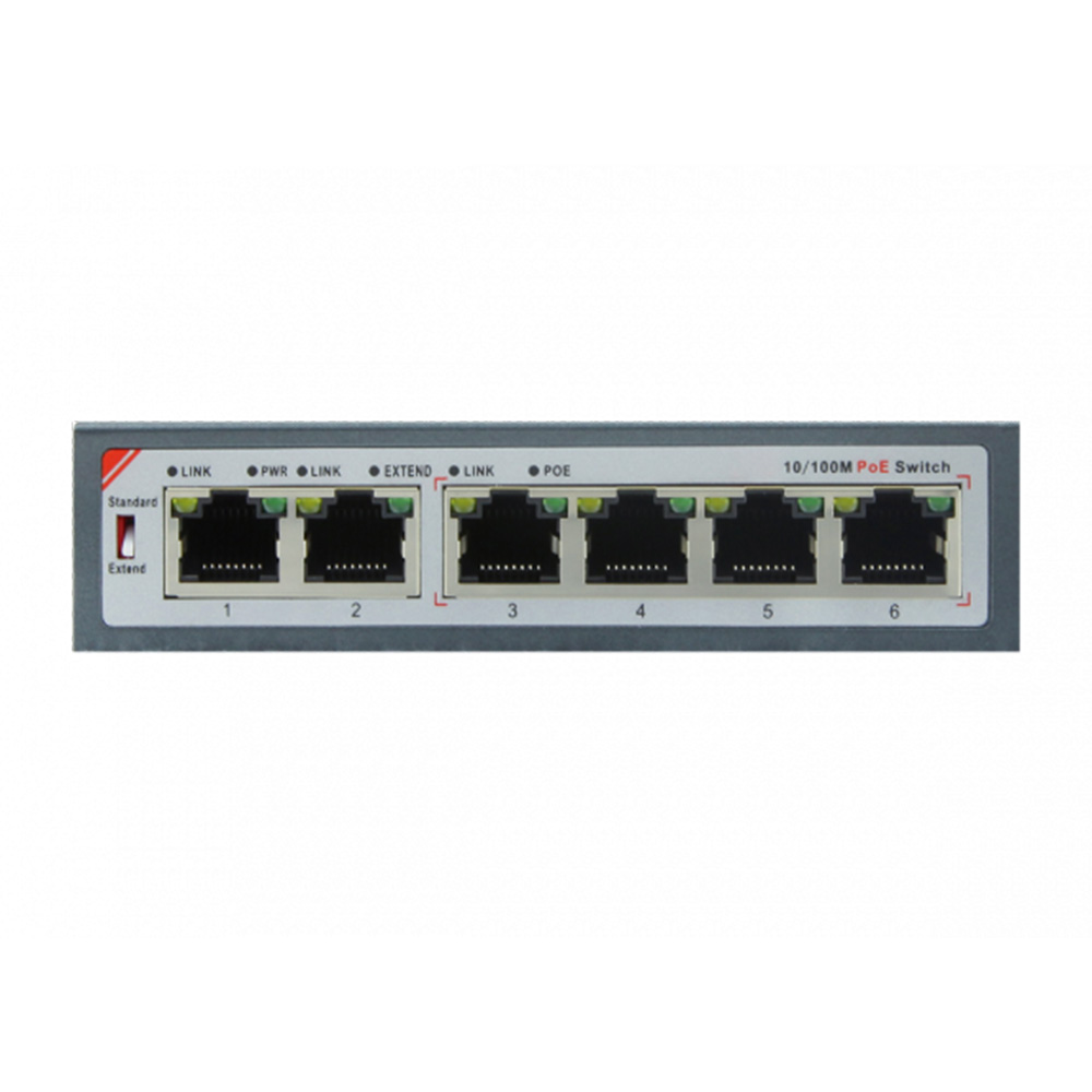 PoE-коммутатор BAS-IP SH-20.4 укомплектован четырьмя PoE-портами Fast Ethernet RJ45 и двумя гигабитными UpLink-портами RJ45.