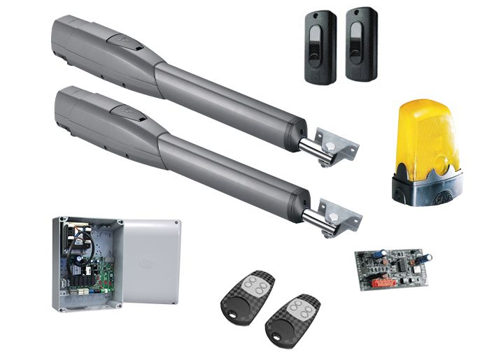 Комплект автоматики для распашных ворот на основе привода ATS30AGS (блок управления ZF1N, радиоуправление, фотоэлементы). Отличное решение для установки в жилом и промышленном секторах на основе универсального телескопического привода