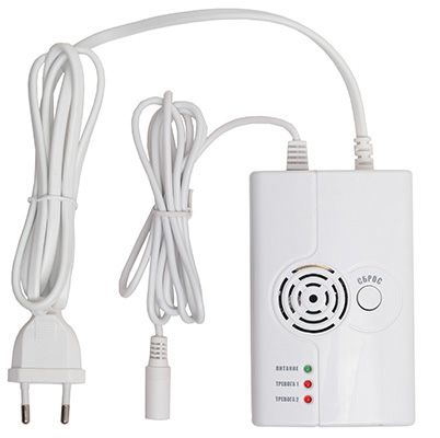Пропан, метан - пороги 10% и 40% НКПР, Uпит.=220 В, 50 Гц, выход реле тревоги, выход на запорный газовый клапан КЛ-1, световая индикация, звуковая сигнализация, пластмассовый корпус 110х70х40 мм.