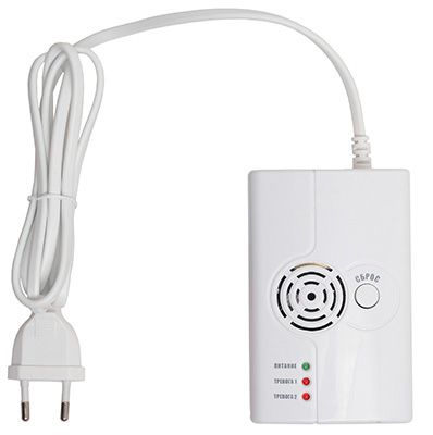 Угарный газ - пороги 50 ppm и 100 ppm, Uпит.=220 В, 50 Гц, выход реле тревоги, световая индикация, звуковая сигнализация, пластмассовый корпус 110х70х40 мм.