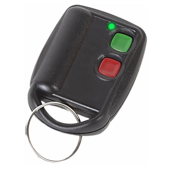 Двухкнопочный (красный/ зеленый) носимый брелок-передатчик совемстим с большинством приемников и панелей производства Elmes Electronic.