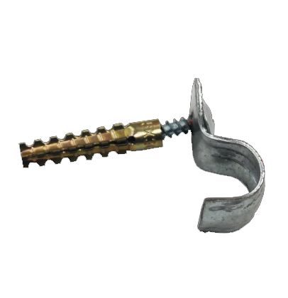 Дюбель–хомут «клоп» представляет собой дюбель металлический универсальный, саморез с широкой шляпкой «клоп» стрый DIN 968 и хомут (скоба однолапковая выбирается под размер). Применяется для кабельных линий с временем сохранения работоспособности 90 минут. Обеспечивает крепление одиночных кабелей или металлорукава диаметром от 6 до 32мм. При креплении одиночных проводов следует избегать нарушения изоляции. Допустимая нагрузка до 10 кг. Реализуется в упаковке, количество 100 штук.