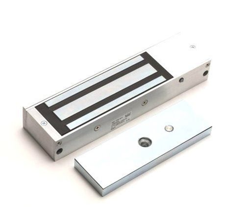Сила удержания 545 кг, для накладного монтажа, датчик Холла, индикация, корпус: анодированный алюминий, 12/24В, 500/250мА, IP20, - 20°C…55°C. Размеры замка: 266х73х40,5мм, размеры якоря: 185х61х16мм.
