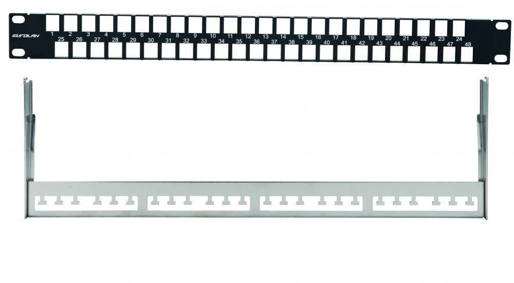 EUROLAN 27B-00-48BL Коммутационная панель наборная, UTP Keystone 19", 1U, 48 порта