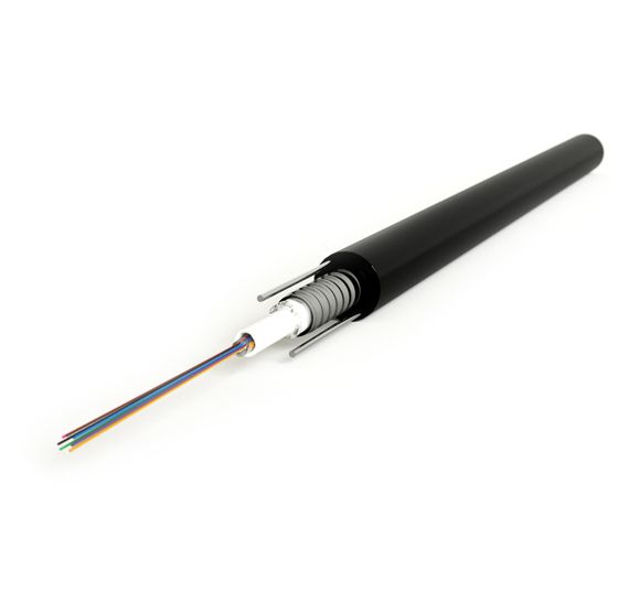 Hyperline FO-SRA-OUT-9S-4-PE-BK Кабель волоконнооптический 9/125 (SMF-28 Ultra) одномодовый, 4 волокна, single loose tube, гелезаполненный, с силовыми элементами, бронированный гофрированной стальной лентой, внешний, PE, -50°С - +70°С, черный