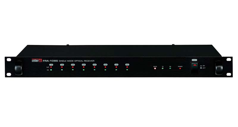 FRA-108S Оптический приемник, 8 линейных аудио выходов, дальность до 15 км, установка одного модуля CR-100M, CR-600RM, CR-600ECS (опция), питание 220В/50 Гц или 24В DC