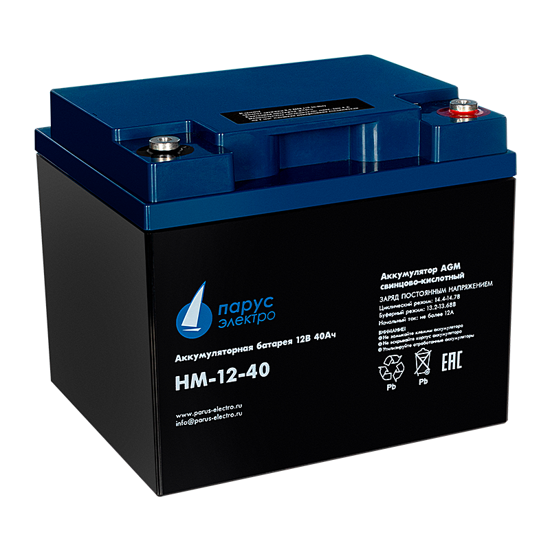 Свинцово-кислотная аккумуляторная батарея HM-12-40 по технологии AGM для циклического режима работы. Применяется в различных системах бесперебойного питания, требовательных электрических приборах (насосах и котлах систем отопления), аварийном энергоснабжении, переносных приборах, а также в стационарных системах с резервным питанием. Электролит заключен в сепараторах между пластин и всегда остается неподвижным, что позволяет эксплуатировать АКБ в любом положении.