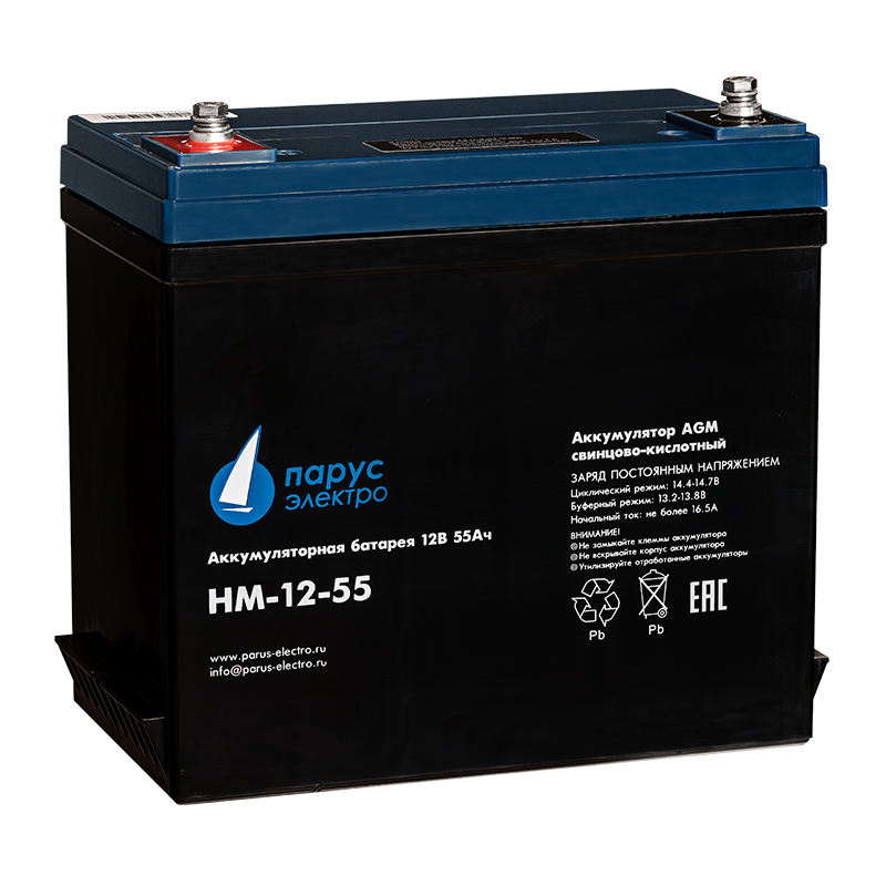 Свинцово-кислотная аккумуляторная батарея HM-12-55 по технологии AGM для циклического режима работы. Применяется в различных системах бесперебойного питания, требовательных электрических приборах (насосах и котлах систем отопления), аварийном энергоснабжении, переносных приборах, а также в стационарных системах с резервным питанием. Электролит заключен в сепараторах между пластин и всегда остается неподвижным, что позволяет эксплуатировать АКБ в любом положении.
