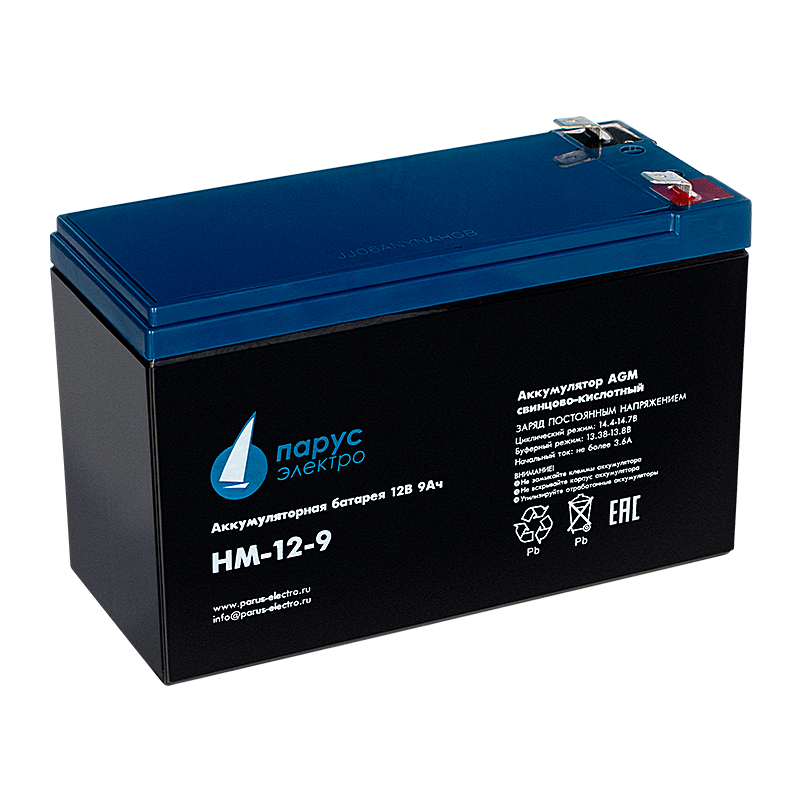 Свинцово-кислотная аккумуляторная батарея HM-12-9 по технологии AGM для циклического режима работы. Применяется в различных системах бесперебойного питания, требовательных электрических приборах (насосах и котлах систем отопления), аварийном энергоснабжении, переносных приборах, а также в стационарных системах с резервным питанием. Электролит заключен в сепараторах между пластин и всегда остается неподвижным, что позволяет эксплуатировать АКБ в любом положении.