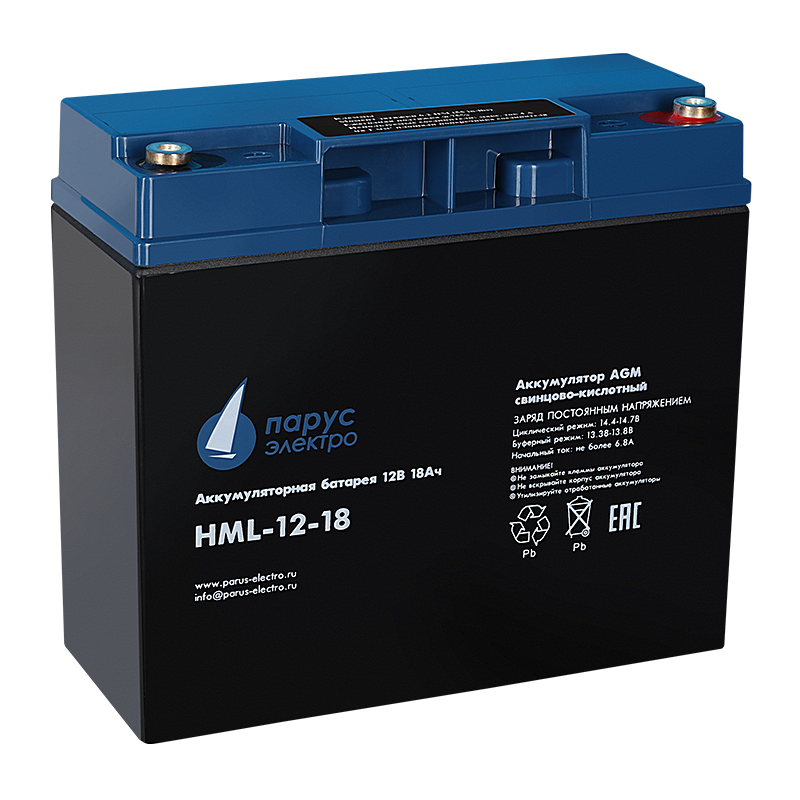 Свинцово-кислотная аккумуляторная батарея HML-12-18 по технологии AGM для длительного срока службы с высокой цикличностью. Применяется для систем бесперебойного питания, безопасности и аварийного освещения, оборудования связи и прочего оборудования с большим количеством циклов разряда - заряда батарей. Электролит заключен в сепараторах между пластин и всегда остается неподвижным, что позволяет эксплуатировать АКБ в любом положении.