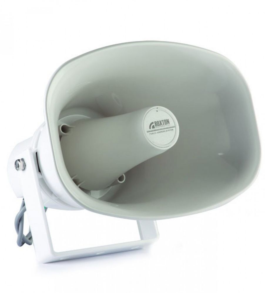 Рупорный громкоговоритель ROXTON HP-30T мощностью 30 Вт сочетает в себе хорошие акустические характеристики и удобство монтажа, что делает его незаменимым при построении систем речевого оповещения и музыкальной трансляции складов, вокзалов, парков и спортивных площадок. Выполненный из всепогодного ABC-пластика, громкоговоритель обеспечивает высокое звуковое давление вкупе с высокой направленностью звукового излучения. Громкоговоритель оборудован специальным П-образным металлический кронштейном, значительно облегчающим монтаж на различные поверхности. Встроенный трансформатор с отводами позволяет устанавливать значения мощности 15 или 30 Вт. Отличительными особенностями ROXTON HP-30T является высокая направленность излучения звуковых волн с максимальным углом раскрытия 90° на частоте 1 кГц, а так же уличным исполнением с высокой степенью защиты IP66.