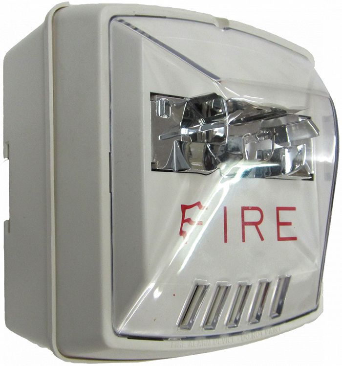 квадратный пластиковый корпус белый, надпись "FIRE", для настенной установки необходим доп. корпус (см. установочные корпуса).