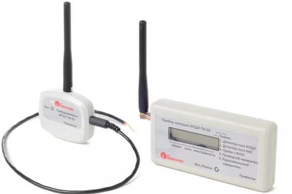 Радиоканальный измеритель - предназначен для дистанционного измерения уровня сигнала на приемнике ИПДЛ-Д-II/4р. Передатчик ПК-02 подключается к сервисному выходу приемника ИПДЛ с помощью провода. Уровень принимаемого сигнала будет передаваться по радиоканалу и отображаться на дисплее ПК-02. Таким образом ПК-02 позволяет юстируя излучатель тут же видеть изменение уровня сигнала на приемнике.