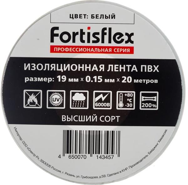 Изолента 19ммх20м белая (Fortisflex) 71231