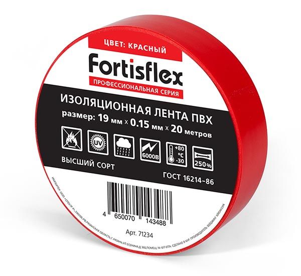 Изолента 19ммх20м красная (Fortisflex) 71234