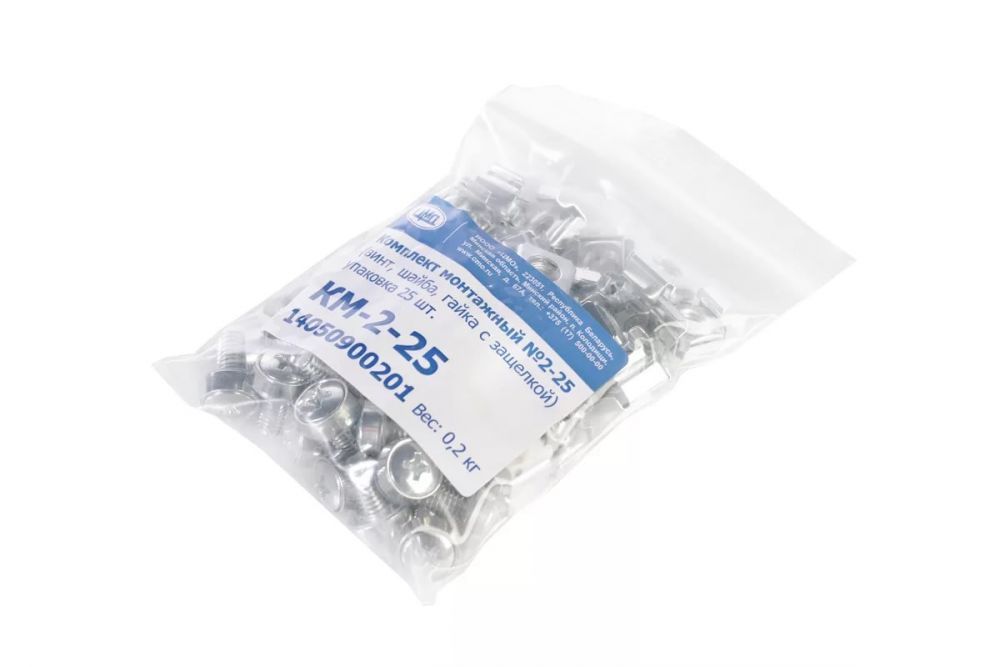 КМ-2-25 Комплект монтажный № 2 (винт, шайба, гайка с защелкой), упаковка 25 шт.