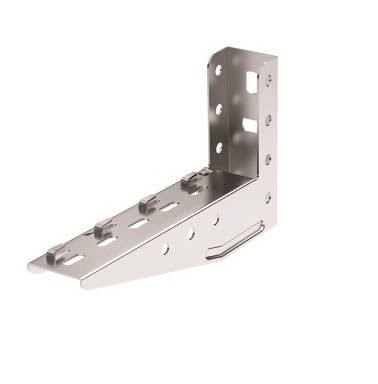 Консоль серии ML для проволочного лотка с шириной основания 150 мм. Предназначена для безвинтового монтажа кабельной трассы на основе системы проволочных лотков "F5 Combitech" с максимально допустимой нагрузкой 170 кг. Возможно крепление к стене или к профилям PSM и PSL болтами М8х60 и гайками М8. Высота консоли - 130 мм. Толщина стали - 2 мм.
