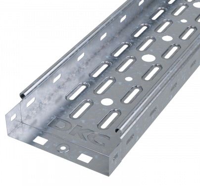 Перфорированные листовые лотки ДКС применяются для прокладки кабеля как в помещении, так и на открытом воздухе. Лотки отличаются высокой несущей способностью – подформовка, производимая при производстве этой продукции, создает дополнительное ребро жесткости, что увеличивает несущую способность системы до 54%. Перфорация сокращает вес конструкции. В лотках имеются отверстия для отвода кабеля диаметром 11 мм, 17 мм, 21 мм. Степень пыле- и влагозащиты перфорированных лотков – IP 10 при использовании крышек, входящих в состав системы. Метод соединения "мама-папа" применяемый для системы, существенно сокращает время монтажа и создает непрерывный контур. Конструктив листовых лотков ДКС предупреждает повреждение кабеля при прокладке.