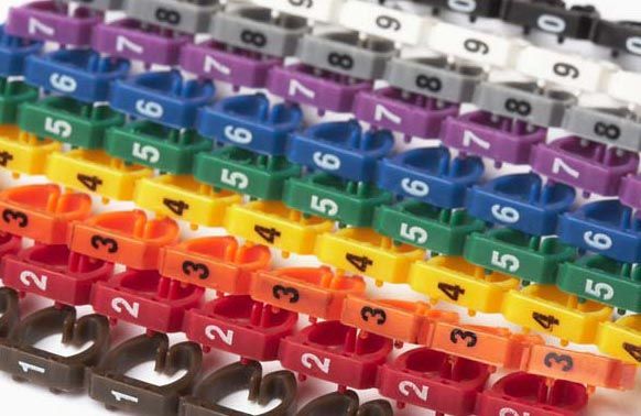 MA-55-R Маркеры (клипсы) на кабель, D4-5,5мм, "0"-"9", 10 цветов (100 шт.)