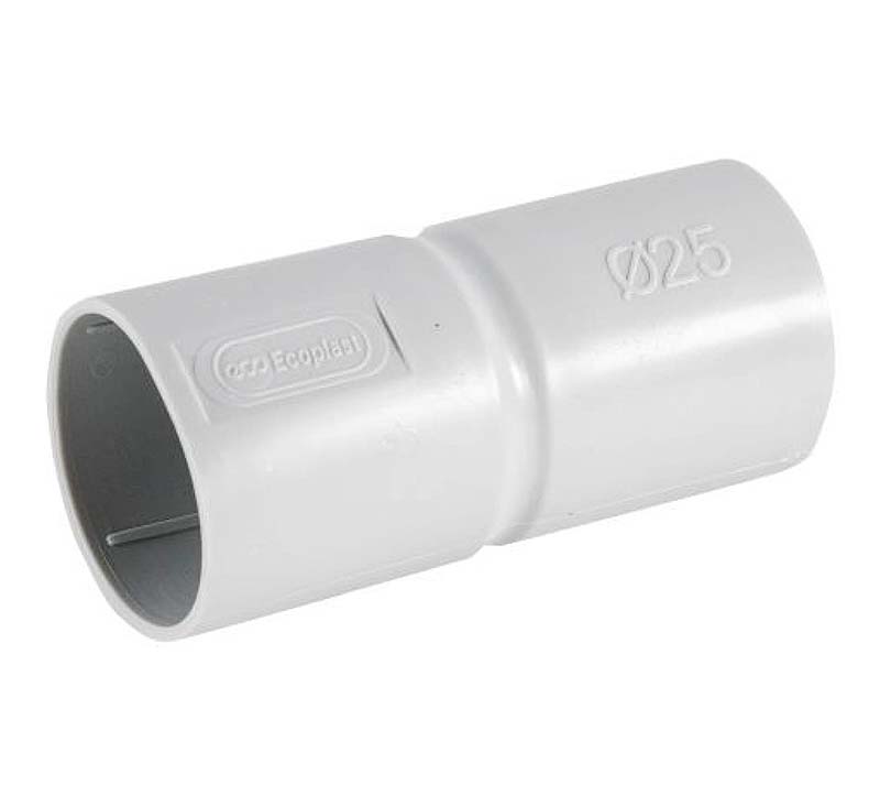 Муфта ТРУБА-ТРУБА с ограничителем для гофрированной или жесткой гладкой трубы выполнена из АБС пластика.