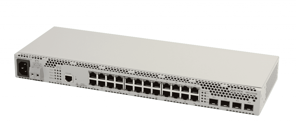 MES2324B Ethernet-коммутатор, 24 порта 10/100/1000 Base-T, 4 порта 10GBase-R (SFP+)/1000Base-X (SFP), L3, 220V AC, 12DC