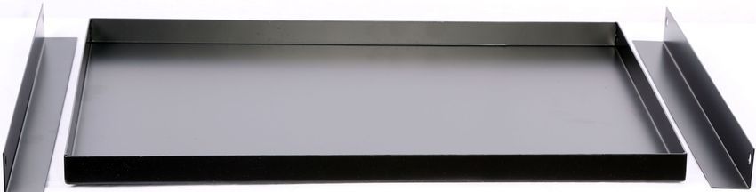 Комплект поддона под АКБ МЕТА 9924 состоит из собственно поддона, двух стальных направлящих, четырех винтов М5, и четырех кузовных гаек М5. Направляющие с помощью винтов и гаек устанавливаются в шкафу, на них ставится поддон, а в поддон устанавливаются аккумуляторы резервного питания.