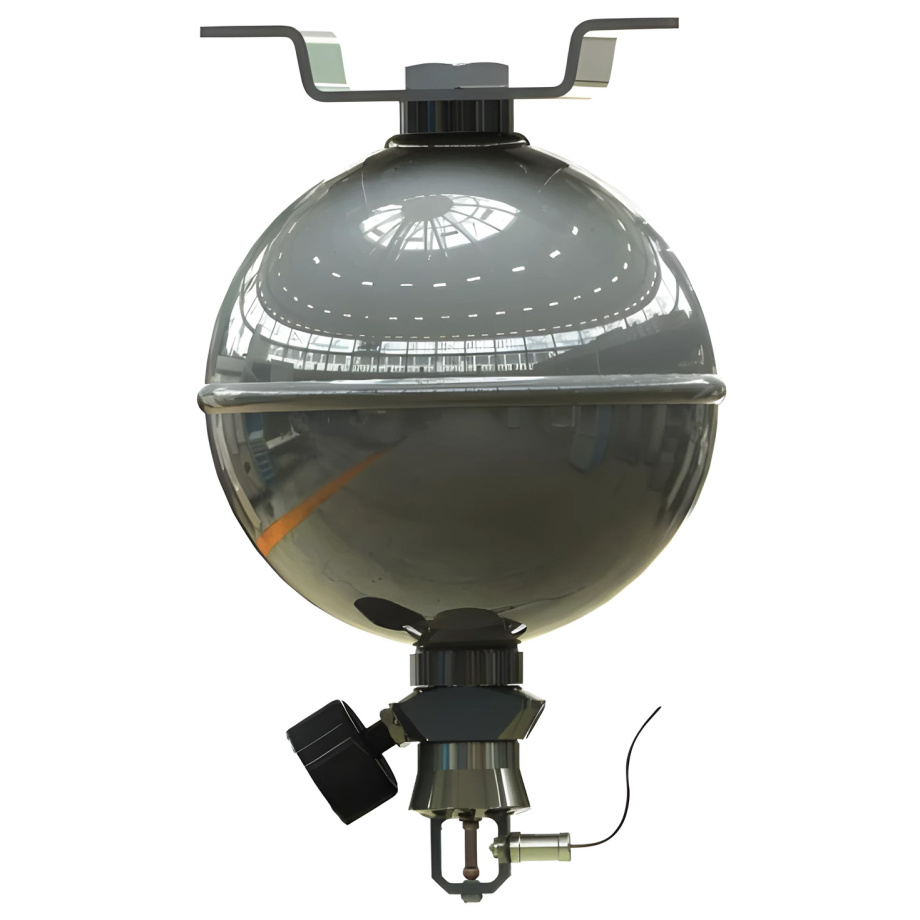 Сосуд для хранения газа имеет сферическую форму устойчивую к воздействию давления. Оснащен клапаном распыления и системой автоматического или принудительного срабатывания. При срабатывании обеспечивает направленное распыление газовой смеси для локализации и тушения возгорания.