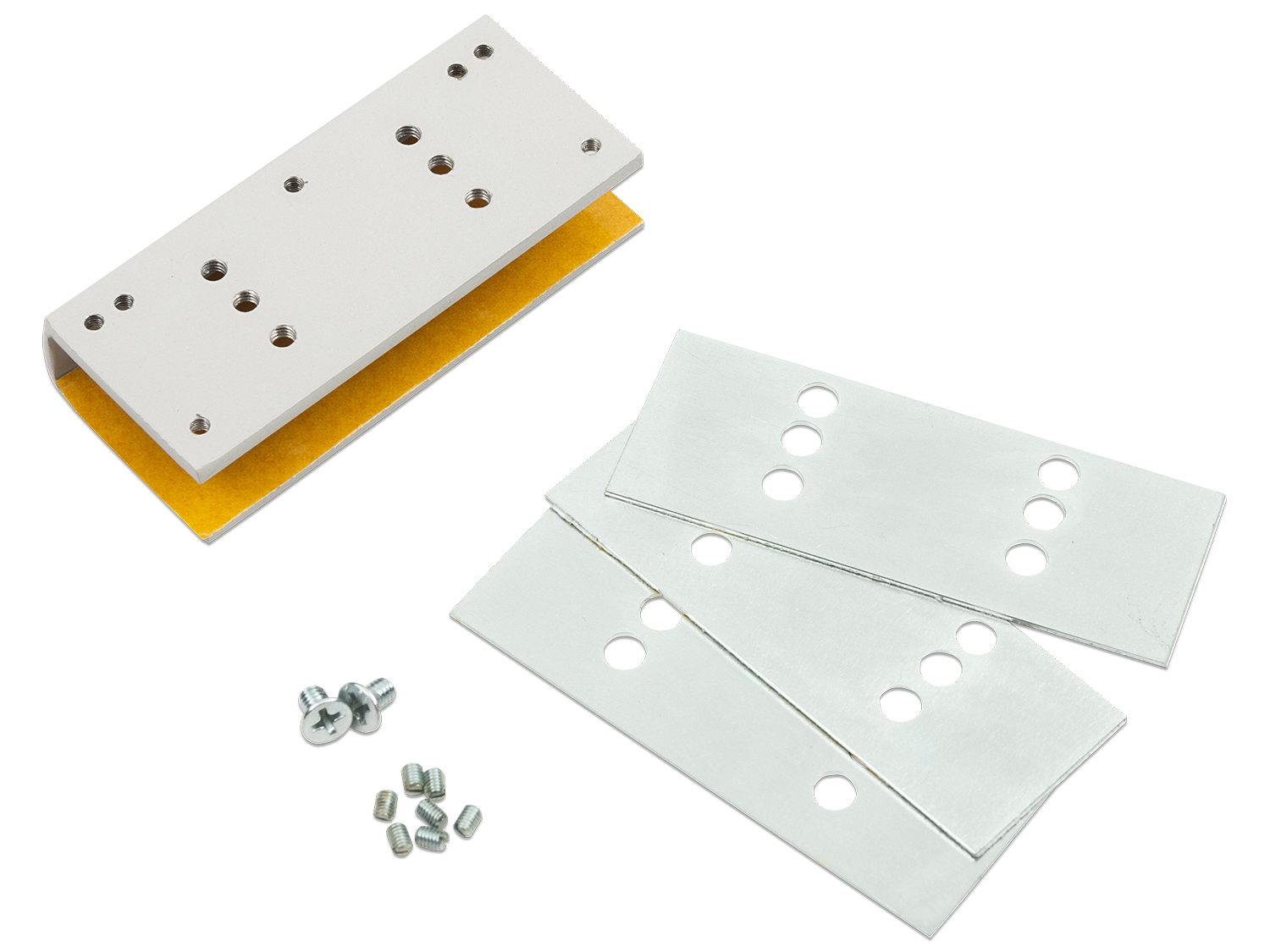 Комплект предназначен для крепления якорной части замка AL-250UZ (AL-250UZ-K) на полотно стеклянной двери и может использоваться для дверей, открывающихся в одну сторону.