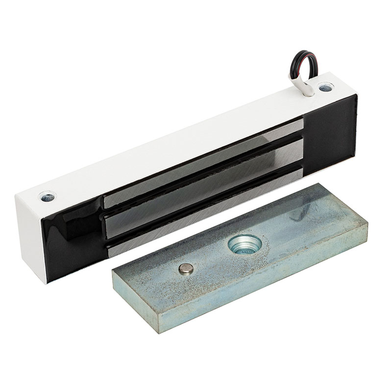 Электромагнитный влагозащищенный замок IP67, 12V DC, не более 0,4 A, усилие 200 кг, габаритные размеры 180x40x25 мм. Масса брутто 800 г., уголок в комплекте.Механический компенсатор эффекта остаточной намагниченности на якоре замка. Цвет белый. Темп.диапазон -40°С…+40°С