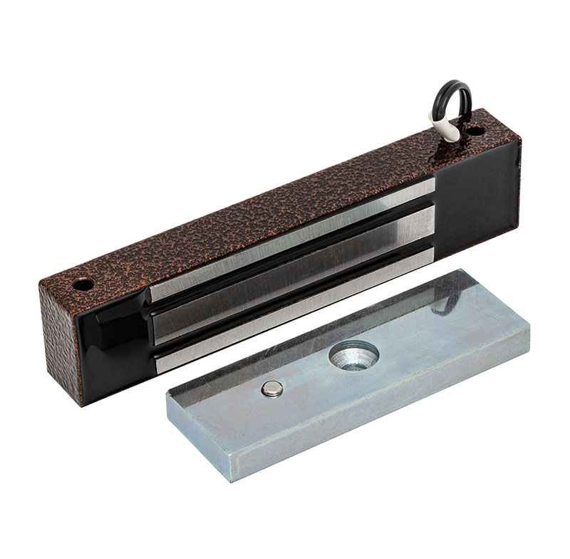 Электромагнитный влагозащищенный замок IP67, 12V DC, не более 0,4 A, усилие 200 кг, габаритные размеры 180x40x25 мм. Масса брутто 800 г., уголок в комплекте.Механический компенсатор эффекта остаточной намагниченности на якоре замка. Цвет коричневый. Темп.диапазон -40°С…+40°С