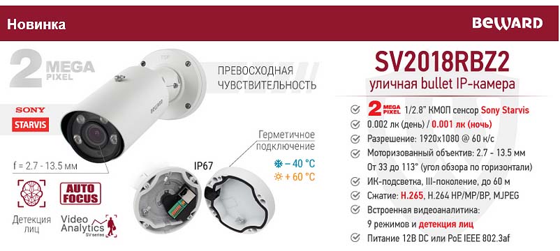 - Высокочувствительный 2 Мп сенсор Sony Starvis нового поколения