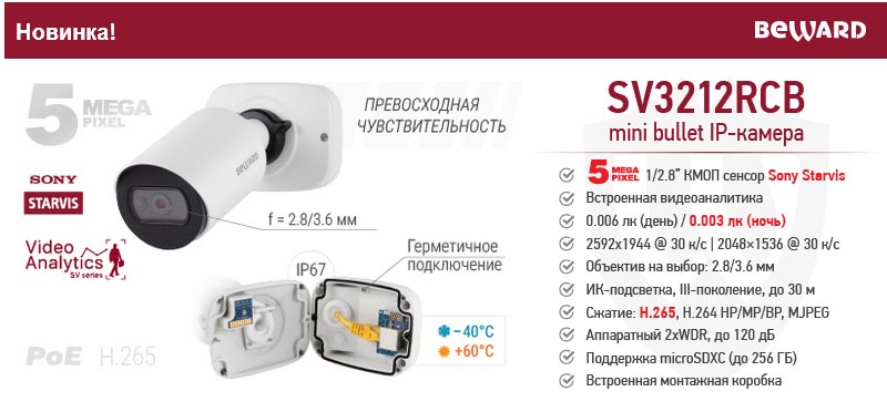 Новинка! 5 Мп IP-камера SV3212RCB отличается удобством монтажа и эксплуатации. Камера оснащена передовым сверхчувствительным сенсором Sony Starvis, который обеспечивает изображение с минимальным уровнем шумов в сумеречное и ночное время. Это значительно повышает уровень детализации объектов и позволяет применять такие IP-камеры там, где другие более ранние модели не справлялись из-за низкой чувствительности или недостаточной детализации изображения.
