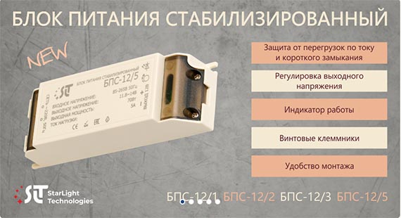 МИР БЕЗОПАСНОСТИ — официальный дилер «СтарЛайт Технолоджи», предлагает новинки Блоки питания стабилизированные