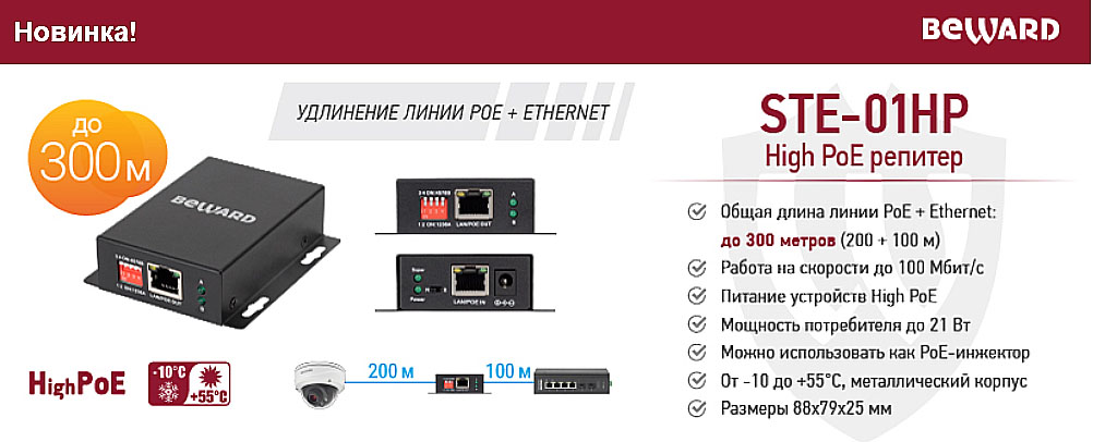 High PoE репитер STE-01HP является универсальным способом удлинить линию PoE + Ethernet. Устройство выполнено в металлическом корпусе с возможностью настенного монтажа.