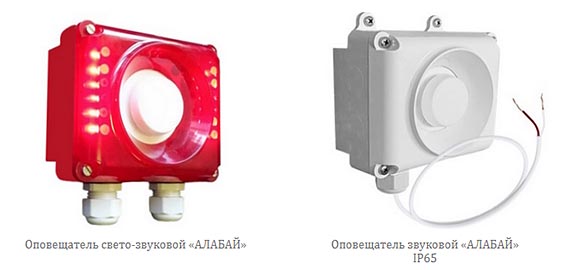 | Оповещатель звуковой «АЛАБАЙ» исп.09 | Свето-звуковой комбинированный, многотональный (с возможностью выбора тона), 95±3 дБ, гермовводы, питание 220В, IP54 |