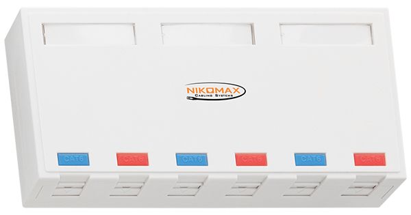 NMC-MB6P-ST-WT Корпус настенной розетки NIKOMAX, 6 портов, под модули-вставки типа Keystone, со шторками, белый