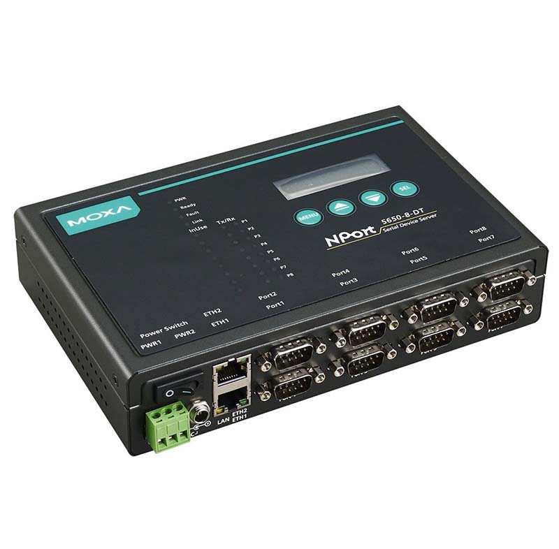 NPort 5650-8-DT-J 8-портовый преобразователь RS-232/422/485 в Ethernet в настольном исполнении с разъёмами RJ45порт