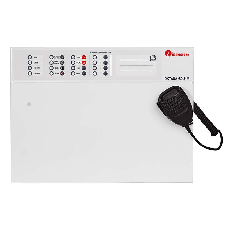 Блочно-модульный прибор управления оповещением «Октава-80Ц-М», входящий в состав системы «Октава-М», предназначен для построения систем оповещения и управления эвакуацией 3-го и 4-го типов (СОУЭ) в зданиях и сооружениях, а также для трансляции информационных и музыкальных программ . Он сочетает функции источника питания, аудио-процессора, усилителя и контроллера линий, обеспечивая надежную работу даже при пропадании сетевого напряжения благодаря встроенным аккумуляторам и автоматическому переходу на резервное питание .
