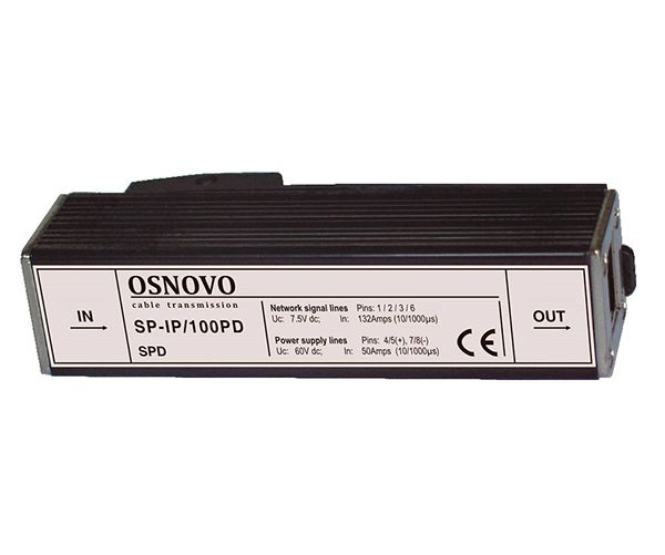 Устройство грозозащиты для локальной вычислительной сети (скорость до 100 Мбит/с) с защитой линий PoE (af/at, метод B, контакты 4/5, 7/8), двухуровневая защита. 1 вход (RJ45-мама), 1 выход (RJ45-мама); Монтаж на DIN-рейку; -40…+80°С; 26x120x27 мм.