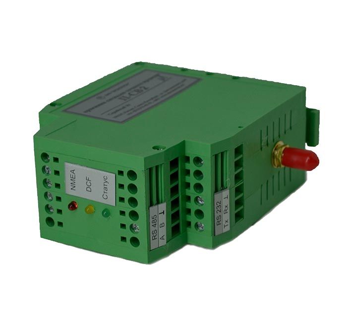 Приёмник сигналов точного времени двухсистемный П-СВ2 обеспечивает синхронизацию часовых систем и средств автоматики с помощью сигналов спутниковых группировок ГЛОНАСС и GPS. Приёмник формирует на основном выходе синхронизации DCF-сигнал типа пассивная «токовая петля». DCF-сигнал формируется с учётом часового пояса, устанавливаемого с помощью DIP-переключателя, расположенного внутри корпуса приёмника. Кроме того, приёмник имеет два информационных выхода для подключения устройств, имеющих порты RS-232 и RS485. На эти порты выводятся сообщения GGA, GSA, GSV, RMC по протоколу NMEA-0183 для расширения возможностей использования приёмника. Приёмник предназначен для совместной работы с часовой станцией ЧСР, первичными часами ЦП-1, ЦП-2, первично-вторичными цифровыми часами ЦПВ, реле времени и другими устройствами, использующими для синхронизации DCF-сигнал.