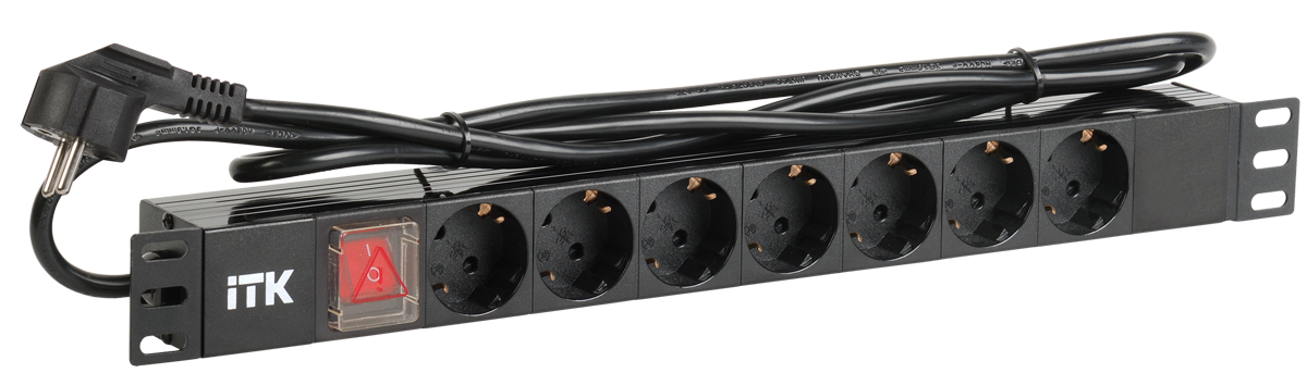 PH12-7D1-P ITK PDU Блок розеток 7 мест (немец. станд.) DIN49440 с LED выключателем, ПВХ 1U шнур 2м